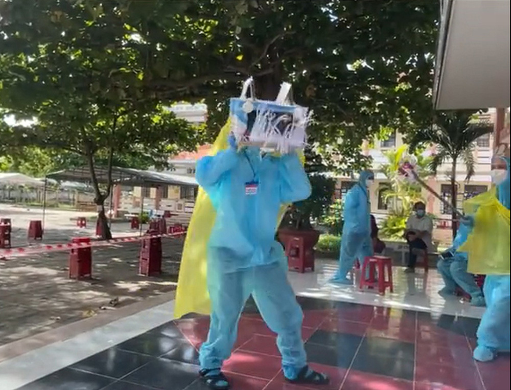Old  Default Tiếng trống múa lân rộn ràng vang lên trong khu cách ly, đội TNV gây chú ý vì màn hóa trang 'lạ'