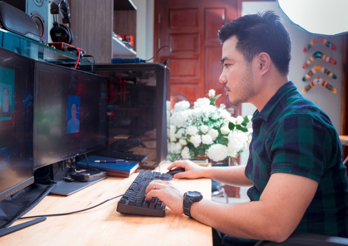 Anh Nguyễn Ân chỉnh sửa ảnh cho nạn nhân Covid-19. Cuối tháng 8, khi lượng người ở TP HCM mất vì Covid-19 tăng, anh cũng phải ngồi vào máy tính đến 1 - 2 giờ sáng. Ảnh nhân vật cung cấp