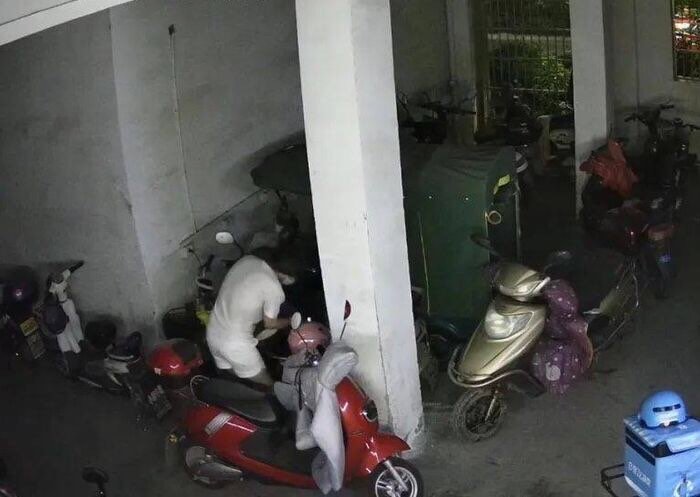 Một nhân viên thuộc tổ tuần tra an ninh cho biết: “Chúng tôi nghe thấy tiếng động bất thường trong nhà để xe nên tới kiểm tra thì phát hiện nghi phạm đang thực hiện hành vi trộm cắp. Lúc đó, ‘người phụ nữ’ nói ‘cô ta’ đang sửa xe điện, nhưng giọng của ‘cô ta’ rõ ràng là giọng đàn ông. Biết bị phát hiện, nghi phạm đã nhanh chóng bỏ chạy”.