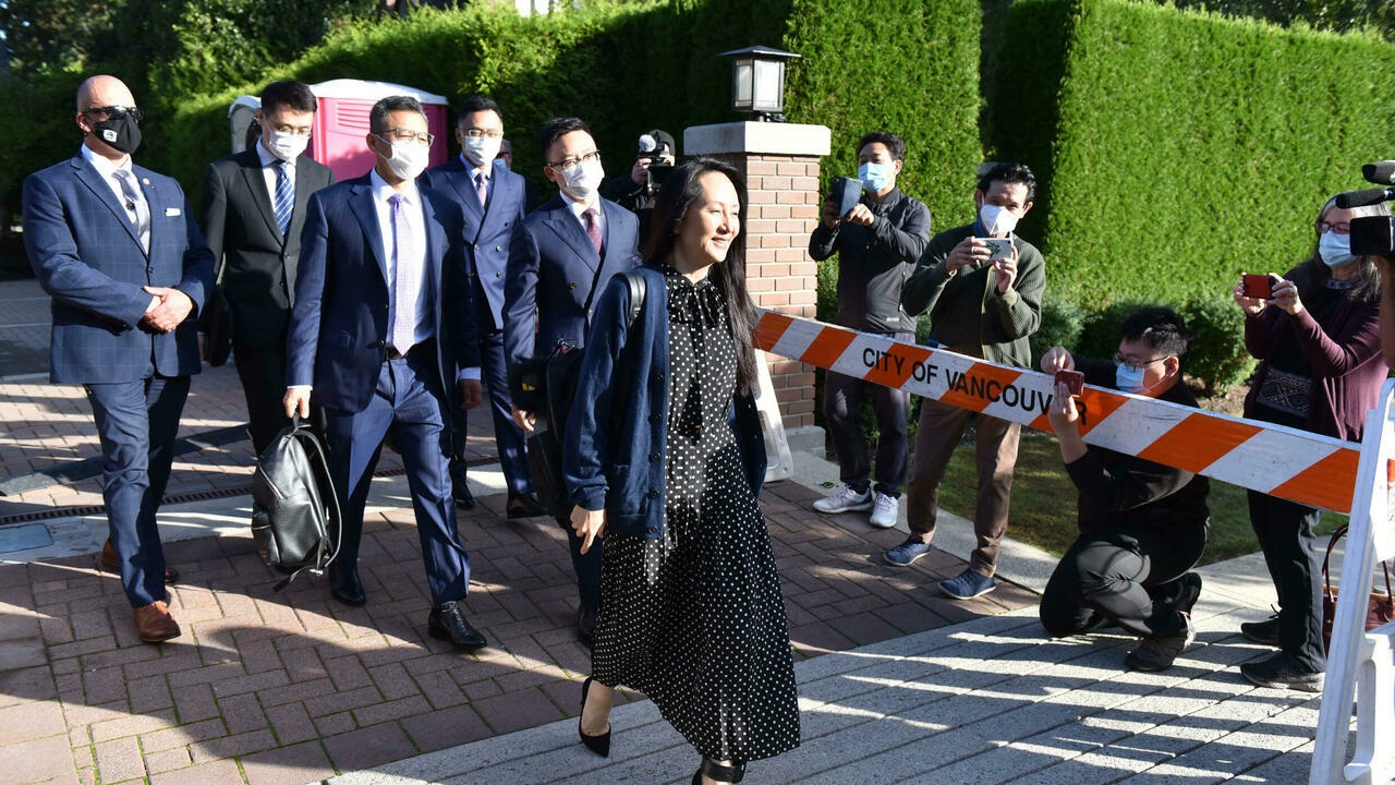 Giám đốc tài chính Hoa Vi, bà Mãnh Vãn Châu, rời khỏi tòa án Vancouver, Canada, ngày 24/09/2021. Don MacKinnon AFP