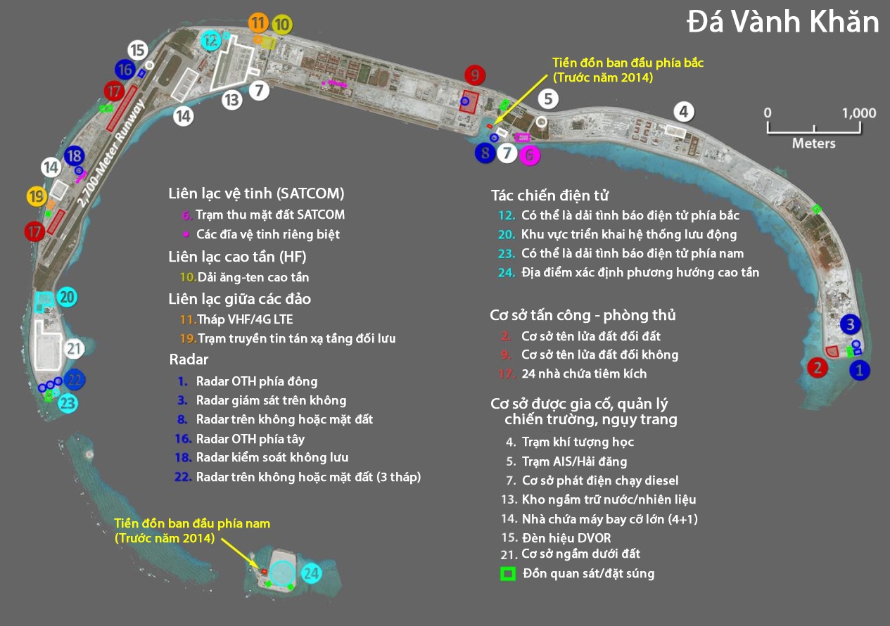 Hệ thống viễn thám dày đặc của Trung Quốc ở Biển ĐôngChuyên gia Mỹ cho rằng hòng chiếm ưu thế trong việc kiểm soát thông tin, Trung Quốc xây dựng mạng lưới thông tin dày đặc trên các đảo nhân tạo bị bồi đắp trái phép trên Biển Đông.