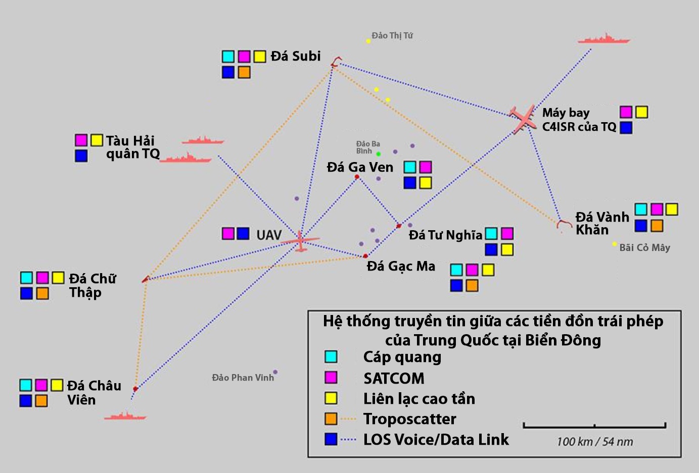 Để thực hiện ý đồ, Trung Quốc đã xây dựng mạng lưới thông tin dày đặc trên các đảo nhân tạo được bồi đắp trái phép. Mạng lưới này góp phần giúp Trung Quốc thực hiện chiến lược chiến tranh thông tin hóa, ông Dahm nhận định.
