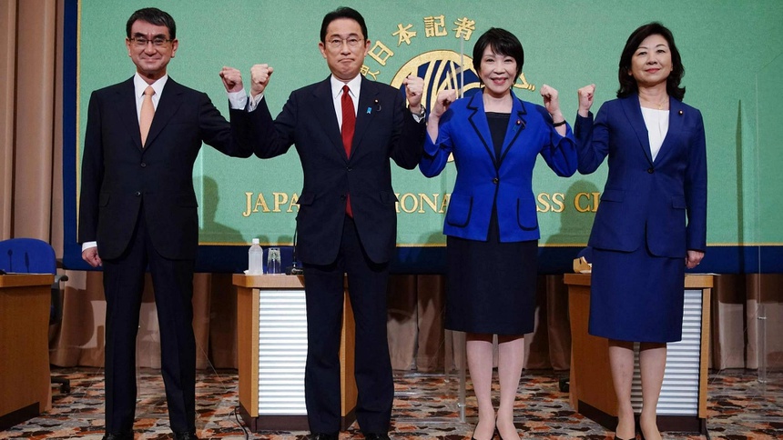 (Từ trái sang) Bốn ứng cử viên cho vị trí chủ tịch đảng LDP của Nhật Bản bao gồm Taro Kono, Fumio Kishida, Sanae Takaichi và Seiko Noda. Ảnh: AP.