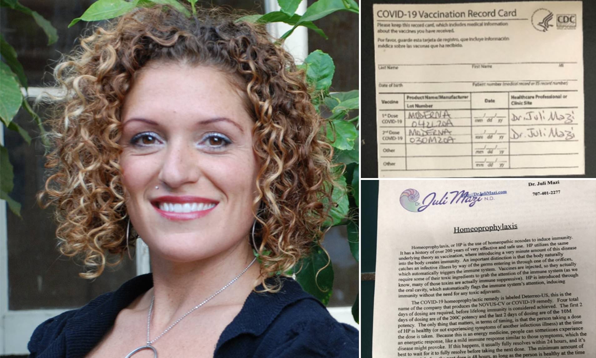 Self-proclaimed ‘naturopathic doctor’ Juli Mazi allegedly sold her customers ‘Covid-19 pellets’ and told them to write in that they had received the Moderna jab in fake vaccination cards