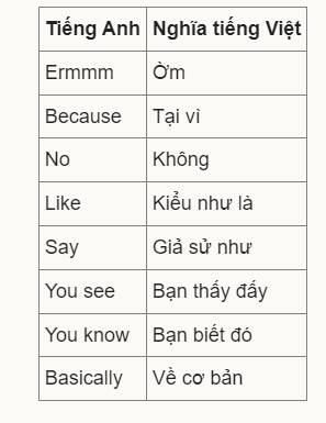 Các diễn đạt không được sử dụng ở đầu câu bao gồm: "ermmm" (ờm), "because" (bởi vì), "no" (không), "like" (kiểu như là), "say" (giả sử rằng), "you see" (bạn thấy đấy), "you know" (bạn biết đấy) và "basically" (về cơ bản).