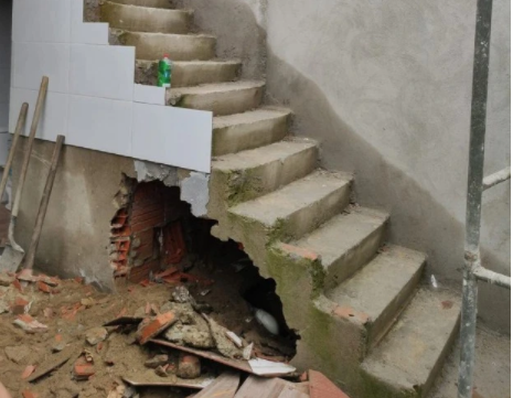 Sau khi kiểm tra một hồi, họ nghi ngờ mùi thối tỏa ra từ một chân cầu thang đã được đắp bê tông.