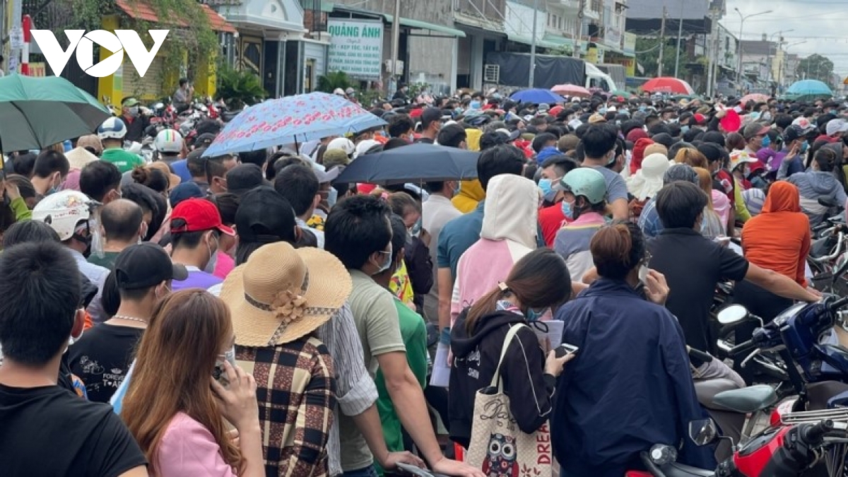 Những ngày qua tại các điểm tiêm chủng ở Bình Dương xảy ra tình trạng người dân tập trung đông, gây ùn ứ và không giữ khoảng cách an toàn phòng, chống dịch bệnh.Điểm tiêm chủng tập trung đông người nhất là ở chợ Đông Phú 1, thuộc phường Thuận Giao, thành phố Thuận An, tỉnh Bình Dương. Dù ngành chức năng có thông báo việc người dân được phát phiếu mới được tiêm chủng nhưng nhiều người không có phiếu vẫn cố chen lấn vào bên trong khu vực tiêm tạo nên cảnh hỗn loạn. Trước tình hình trên, phường Thuận Giao phải tăng cường lực lượng công an, quân sự hỗ trợ tuyên truyền, kêu gọi người dân giữ khoảng cách an toàn, xếp hàng chờ đến lượt.Tại một số điểm tiêm khác ở các phường: Lái Thiêu, Bình Hòa của thành phố Thuận An, hay ở thành phố Thủ Dầu Một, thị xã Bến Cát… cũng xuất hiện tình trạng người dân kéo đến các điểm tiêm rất đông. Theo người dân, họ muốn được tiêm mũi 2 để sớm trở lại làm việc, thuận tiện cho việc đi lại trên địa bàn. Một số trường hợp khác thì quá hạn tiêm mũi 2.
