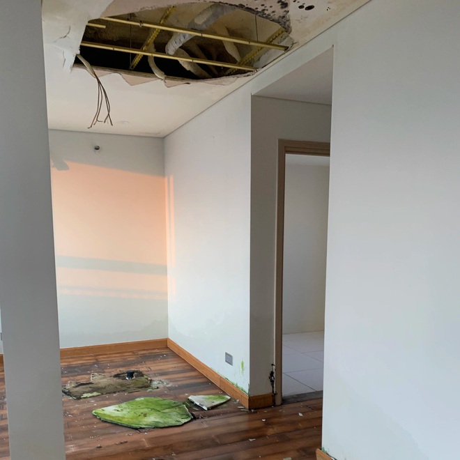 "Khi bàn giao thì phát hiện ra các lỗi, ban quản lý và chủ đầu tư đã nhận và hứa sửa chữa, đồng thời nhận chìa khóa quản lý bất động sản này. Tuy nhiên, trong quá trình chủ đầu tư sửa chữa, gia đình vô tình phát hiện ra tình trạng thủng trần", đại diện chủ hộ nói. Vị này thông tin thêm, bên cạnh đó, tiện ích khu dân cư 5 sao và quản lý vận hành vẫn còn bất cập. Thông tin kết nối giữa ban quản lý với đại diện chủ nhà còn chậm.