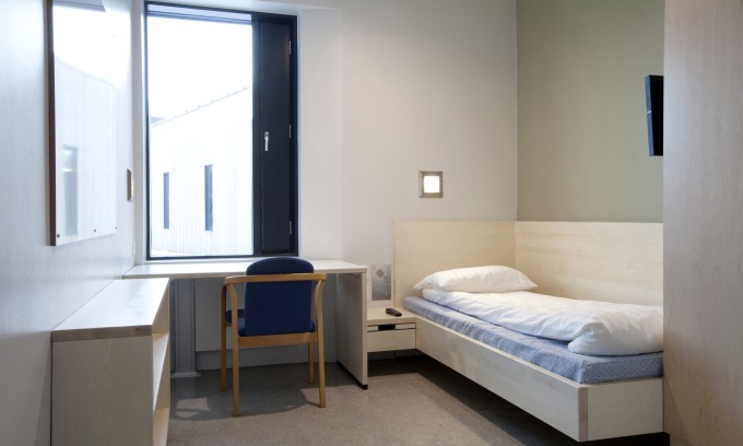 Một buồng giam tại nhà tù Halden của Na Uy, có tủ lạnh, bàn làm việc và TV. Ảnh: Reuters.