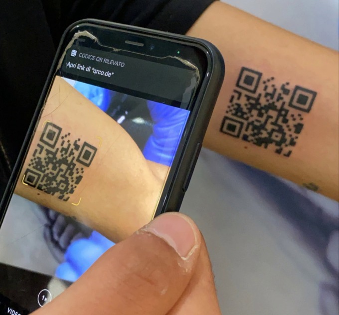 "Vào những năm 1990, nhiều người thích xăm mã vạch. Ngày nay, họ xăm mã QR có thể quét bằng điện thoại", Gabrielle Pellerone, một nghệ sĩ xăm hình ở khu phố Reggio Calabria (Italy) nói. Vào tháng 8, Pellerone đã thiết kế lại một hình xăm chứa chứng nhận tiêm vaccine Covid-19 và được lan truyền khắp mạng xã hội.