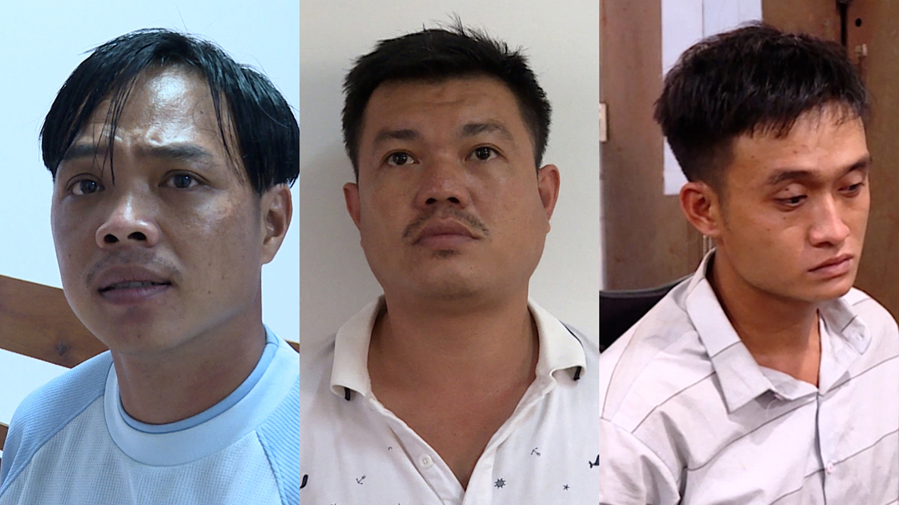 Ba nghi can (từ trái) Trần Văn Sang (37 tuổi), Trần Bá Vương (34 tuổi), Trần Văn Tín (còn gọi là Não, 30 tuổi).