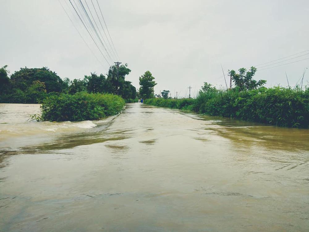 Quốc lộ 1A đoạn qua xã Lộc Trì (huyện Phú Lộc, tỉnh Thừa Thiên Huế) bị ngập cục bộ 0,15m gây khó khăn cho việc lưu thông.