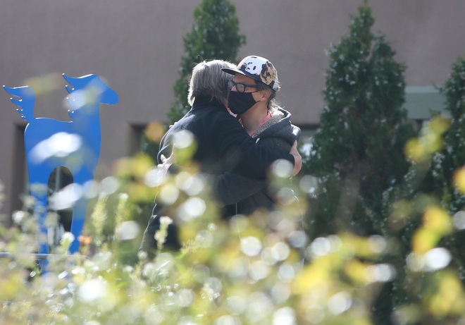 Tài tử Alec Baldwin và chồng của cô Halyna Hutchins trong cuộc gặp gỡ vừa diễn ra sau bi kịch trên phim trường "Rust" (Ảnh: New York Post).