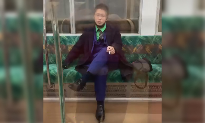 Kyota Hattori mặc trang phục giống nhân vật phản diện Joker, khiến hành khách trên tàu tưởng là người đi chơi Halloween, cho đến khi anh ta vung dao.