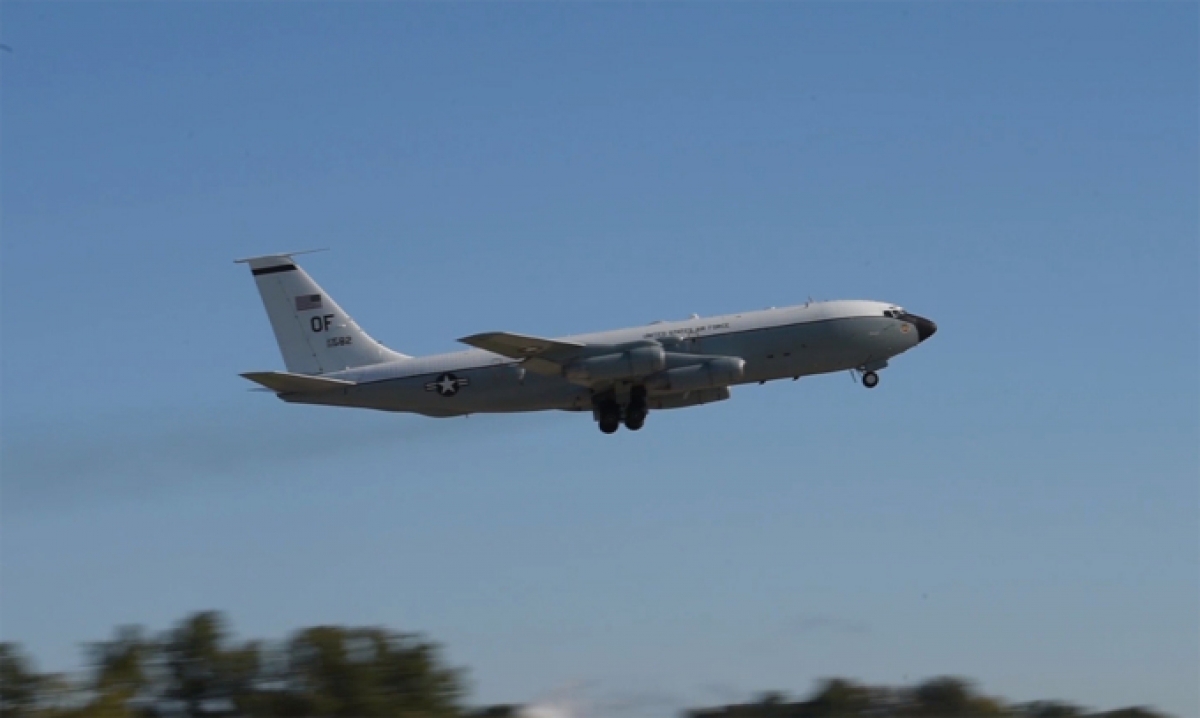 Máy bay dò tìm phóng xạ WC-135 cất cánh từ căn cứ Offutt, bang Nebraska, Mỹ tháng 10/2018. Ảnh: USAF.