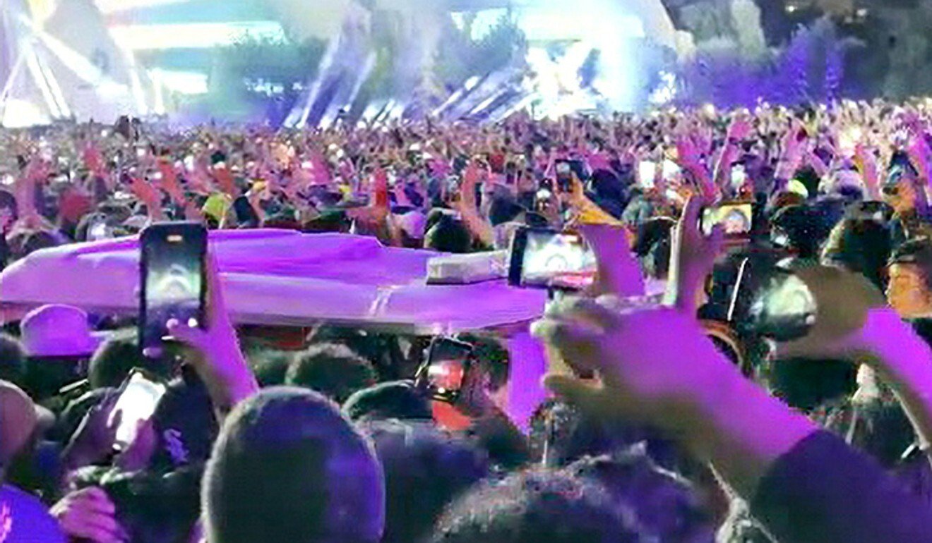 Xe cứu thương di chuyển qua đám đông tại lễ hội âm nhạc Astroworld.