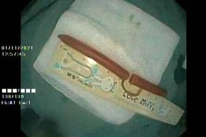 Sau thời gian ngắn, ê kíp bác sỹ của bệnh viện đãlấy được cây nến gãy đôi trong trực tràng với dụng là cái dây thòng lòng tự tạo ngay trong phòng mổ.