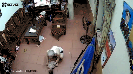 Trong đoạn clip, người ông đang tập tễnh bước đi trong nhà. Thế nhưng, khi vừa nhận ra đứa cháu nhỏ đang nằm thiếp đi dưới nền đất với tư thế không thoải mái, sợ cháu bị lạnh, ông đã lập tức đi đến và vội bế cháu lên.