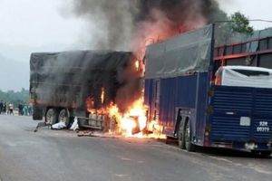 Sau vụ va chạm mạnh, phần đầu 2 ôtô bốc cháy dữ dội. Vụ tai nạn khiến một tài xế tử vong, 4 người khác bị thương nặng.