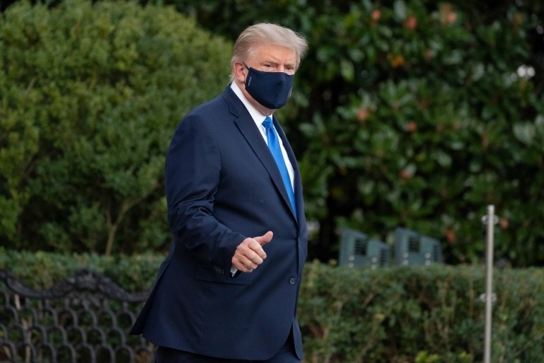 Donald Trump rời Nhà Trắng đến Trung tâm Quân y Quốc gia Walter Reed ngày 3/10/2020. Ảnh: AP.
