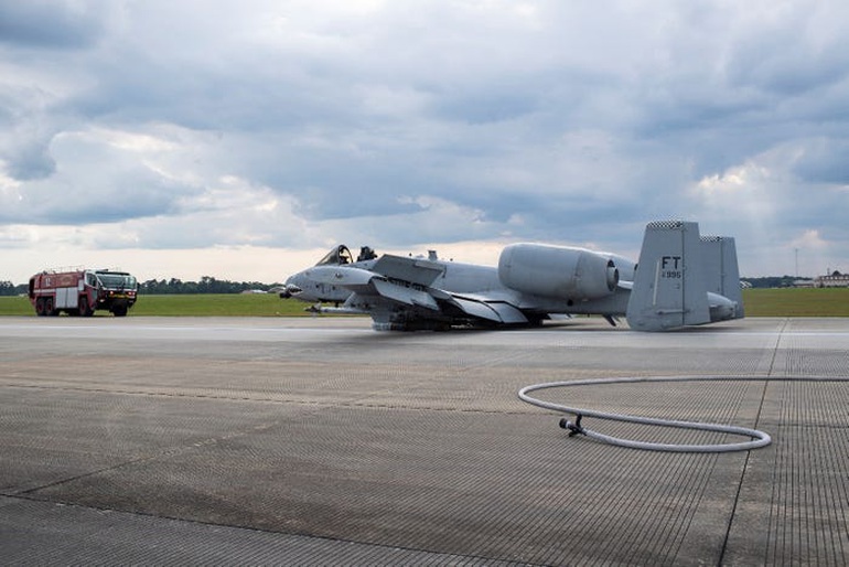 Máy bay A-10 của Bye nằm trên đường băng sau cú hạ cánh bằng bụng năm ngoái (Ảnh: BI).