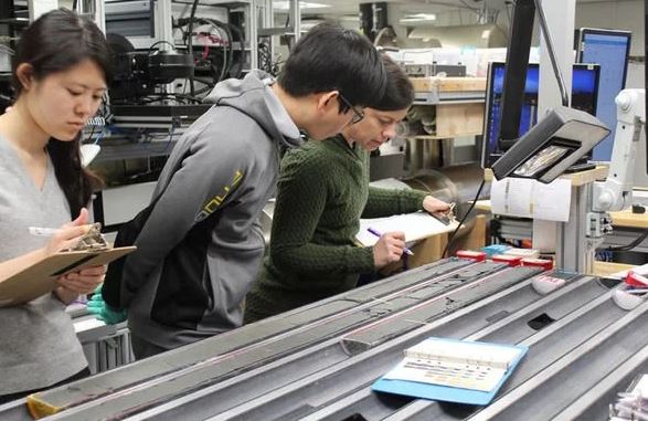 Các nhà khoa học nghiên cứu lõi băng thu thập được từ Nam Cực (Ảnh: Đại học Hoàng gia London)