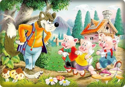 Có một hôm, heo A và heo B đứng trước cửa, heo C thì ở trên gác. Một con sói phát hiện và muốn ăn thịt chúng, thế là chạy lại trước mặt heo A...