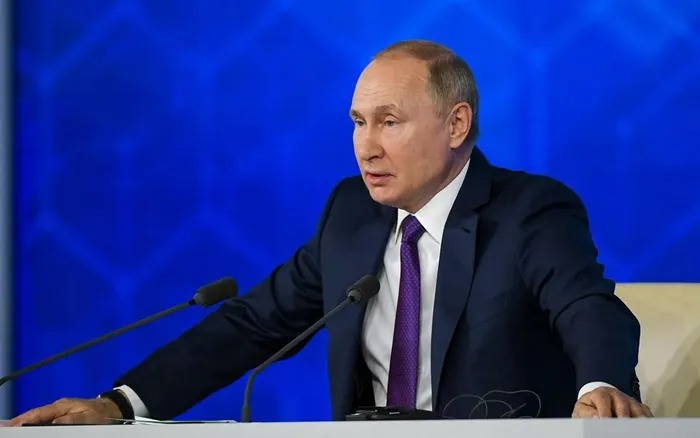 Tổng thống Nga Putin tại cuộc họp báo cuối năm hôm 23/12 ở Moscow. Ảnh: Sputnik.