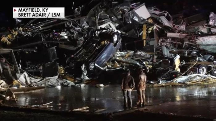 Cảnh tượng tan hoang tại Mayfield, bang Kentucky sau khi hứng lốc xoáy. Ảnh: Fox News