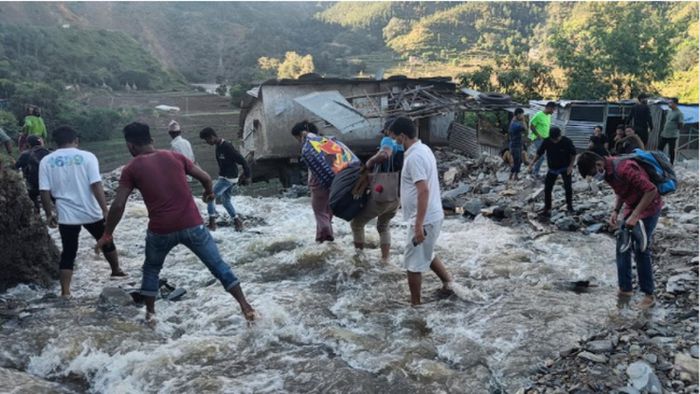 Lũ lụt và lở đất do mưa xối xả kéo dài nhiều ngày ở Nepal. Ảnh: AP