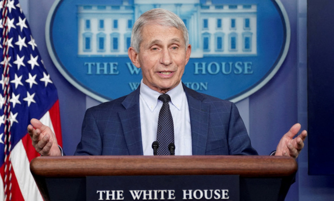Tiến sĩ Fauci họp báo tại Nhà Trắng hồi tháng 12/2021. Ảnh: Reuters.