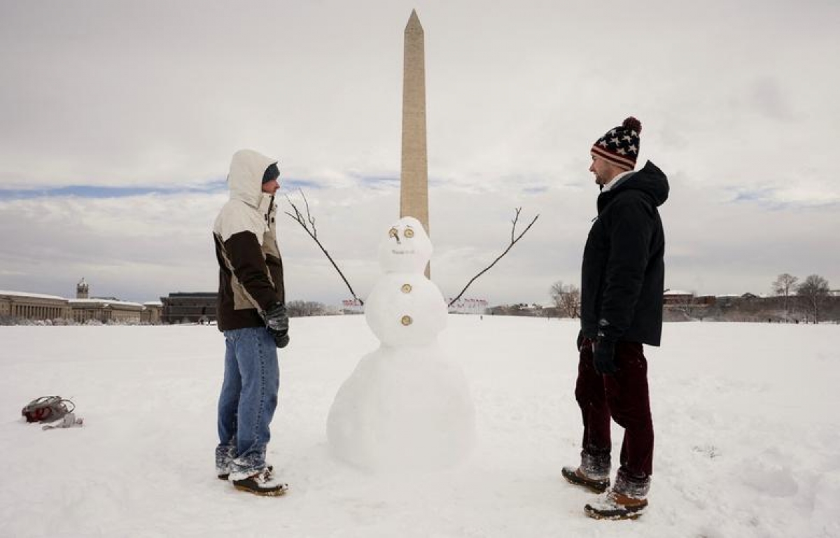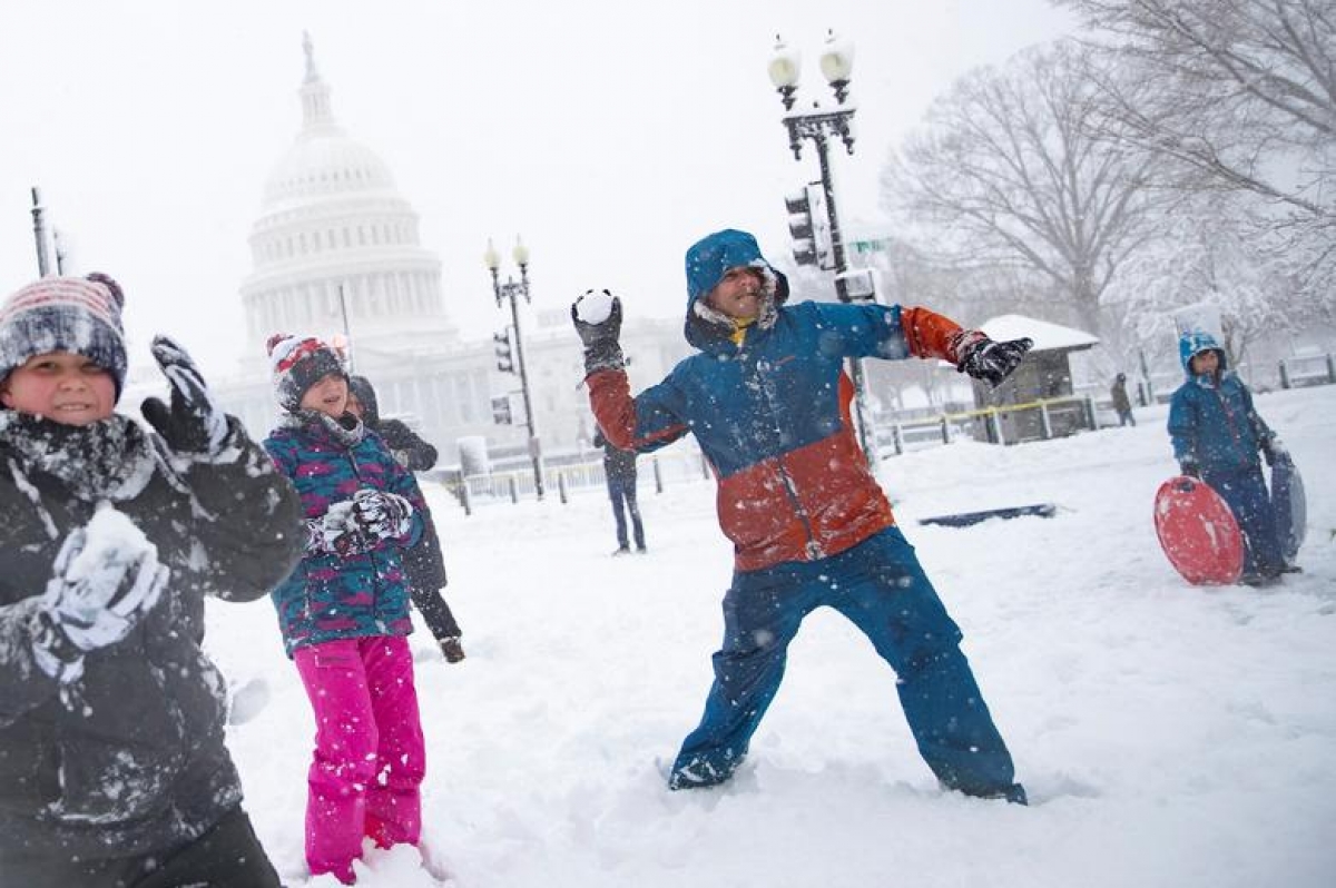 Người dân chơi ném tuyết ở khu vực bên ngoài Tòa nhà Quốc hội ở thủ đô Washington ngày 3/1.