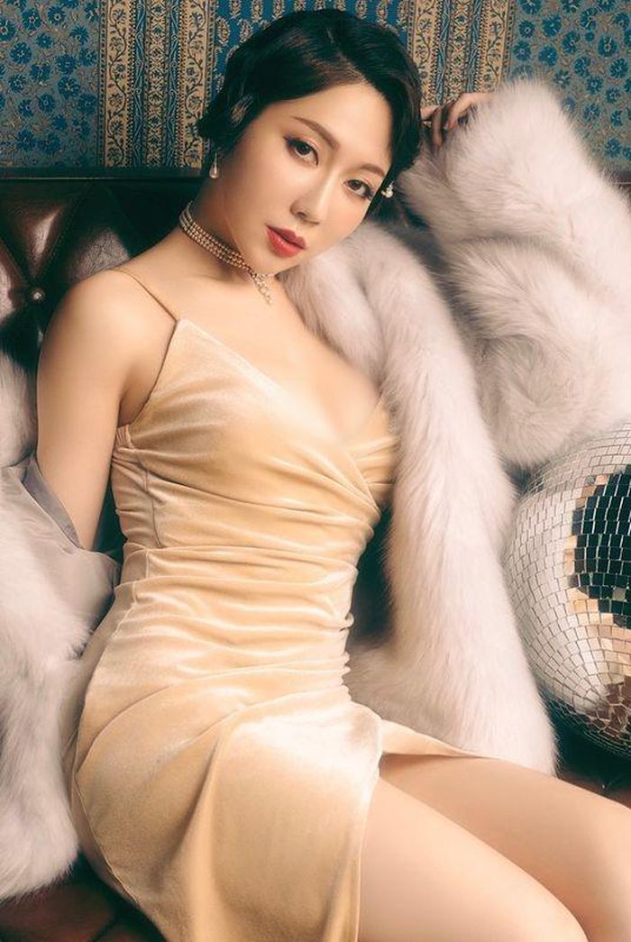 Trong bộ xường xám cách điệu, hở vai, khoét ngực khá sâu, hot girl xinh đẹp khoe được nét gợi cảm phong tình của mình.