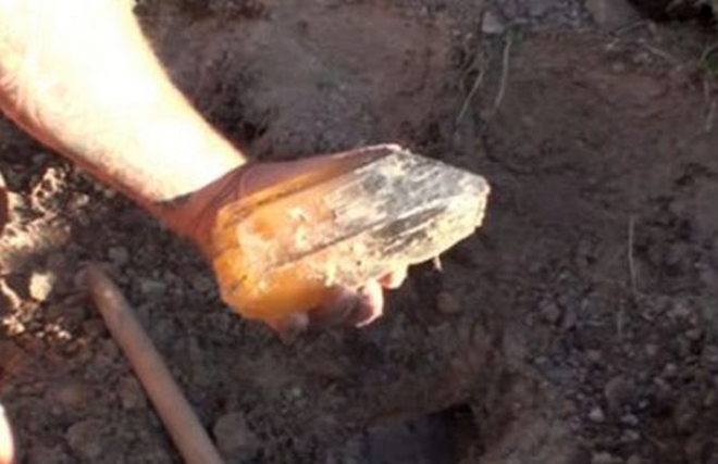 Ngày hôm ấy, trong khi đang làm móng nhà thì người thanh niên bỗng nhiên đào được một thứ trông rất kỳ lạ. Đó là một viên đá màu vàng trong suốt.