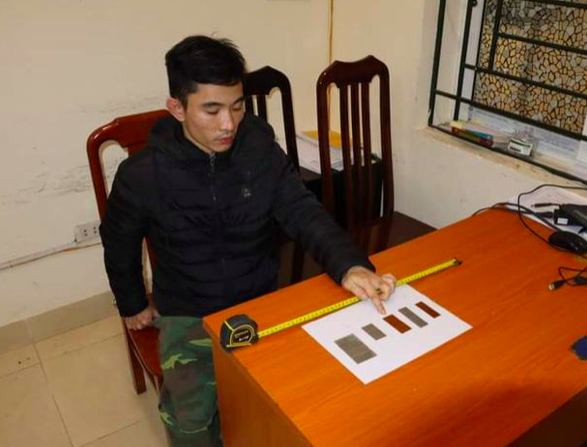 Bị can Huyên tại cơ quan công an