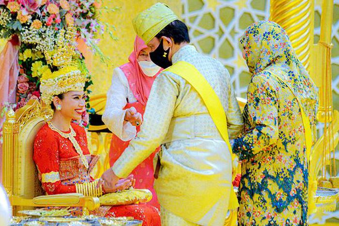 Gia đình chú rể mang sính lễ tới nhà gái ngày 18/1. Họ được mời đến phòng tiệc ở Cung điện Nurul Iman và được các thành viên của hoàng gia tiếp đón long trọng.