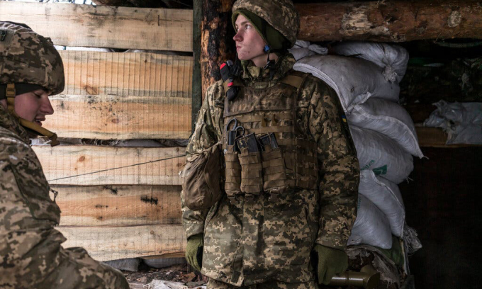 Lính Ukraine tại một chiến hào ở Popasna, miền đông Ukraine. Ảnh: NY Times.