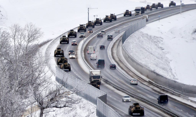 Đội h́nh xe thiết giáp của Nga ở một con đường tại Crimea tuần trước. Ảnh: AP.