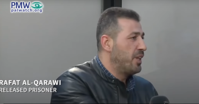 Cựu tù nhân Rafat Al-Qarawi chia sẻ bí mật trên truyền hình. Ảnh: Palestine Media Watch