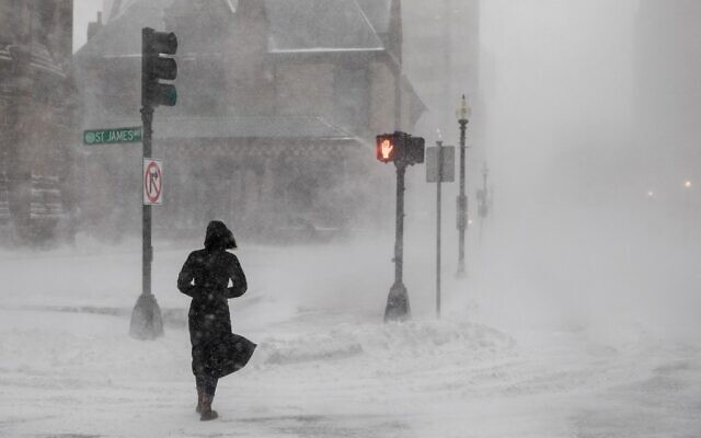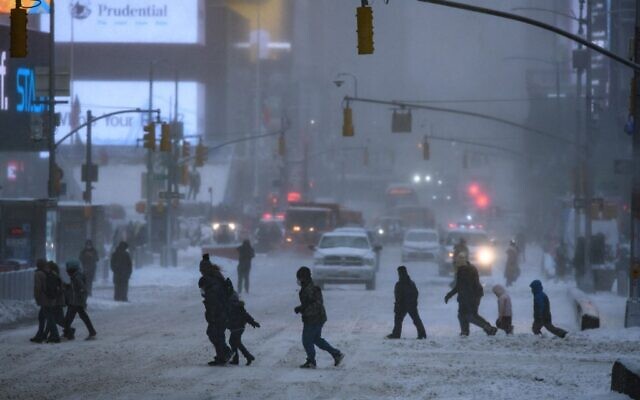 Người đi bộ băng qua đường trong cơn bão mùa đông ở New York vào ngày 29/1/2022. Ảnh Times Of Israel