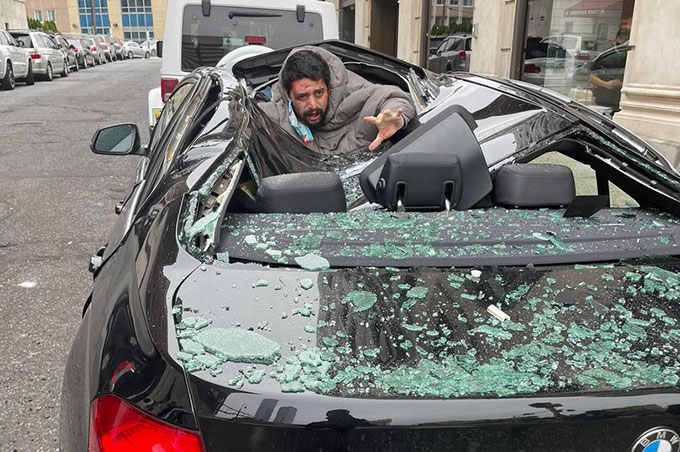 Các nhân chứng khi đó cho biết họ nghe thấy tiếng "uỳnh" lớn và thấy người đàn ông trên chiếc BMW vỡ nát. Họ cho rằng cửa kính ôtô đã nổ tung khi người đàn ông rơi trúng nó với chiếc dây đeo khẩu trang vẫn còn trên tai. Ngoài ra, họ còn nghe thấy anh này hỏi: "Chuyện gì đã xảy ra?".