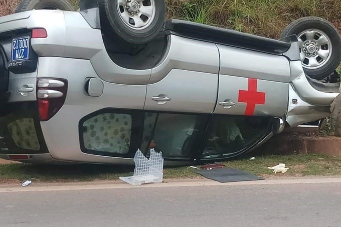 Xe cứu thương gặp tai nạn ở Sơn La ngày 2/2. Ảnh: ĐVCC