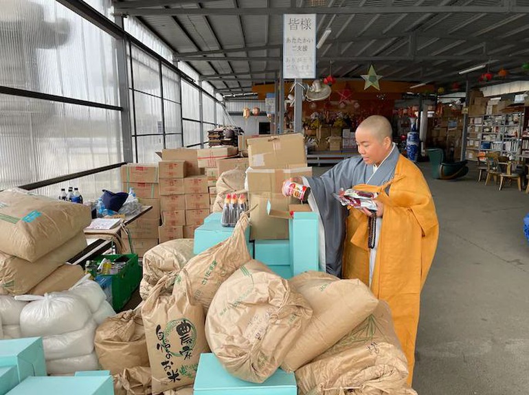 Sư cô Thích Tâm Trí phân loại túi đồ nhằm giúp đỡ người Việt tại Nhật Bản (Ảnh: Washington Post).