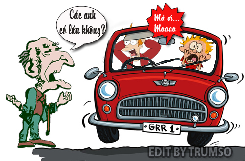 Người lái xe tăng tốc nhưng khuôn mặt của ông vẫn già vẫn ở nguyên chỗ cửa sổ. Gã bạn đồng hành hạ kính cửa sổ, hỏi: