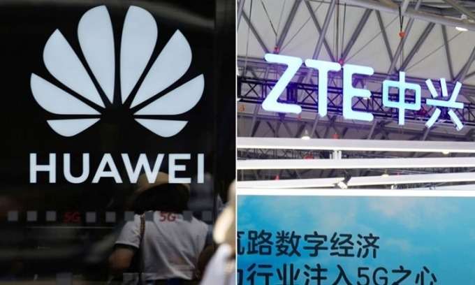 Logo của công ty Huawei và ZTE. Ảnh: Reuters