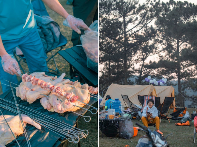 Buổi tối, khách sẽ được trải nghiệm đốt lửa trại dưới cái rét 13 độ ở Đà Lạt. Để buổi cắm trại đêm thêm phần ấm lòng no bụng, bên tour có chuẩn bị ngô và khoai cho cả đoàn cùng nướng. Ngồi quây quần bên ánh lửa hồng, nhâm nhi thức nhắm, Rọt cho biết mình được làm quen với nhiều người mới, mỗi người mỗi vùng đất khác nhau, mỗi độ tuổi khác nhau nhưng lại có cùng sở thích. Được trò chuyện, kết giao với những người bạn mới là một điều hết sức ý nghĩa.