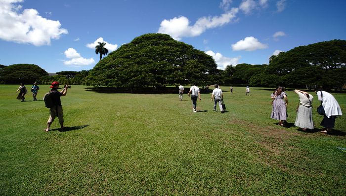 Nhiều du khách Nhật Bản khi đến Hawaii du lịch đều Moanalua Gardens để tận mắt ngắm nhìn cây me tây cổ thụ xuất hiện trong quảng cáo của tập đoàn Hitachi.