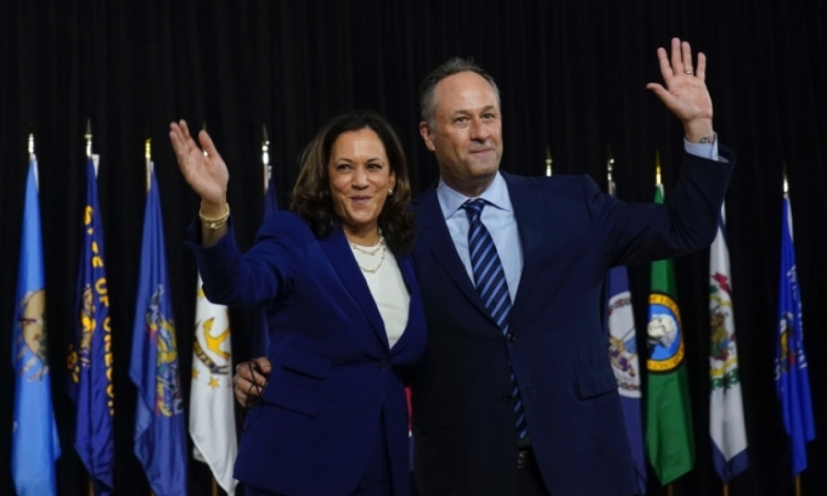 Ông Doug Emhoff (phải) và bà Kamala Harris trong một sự kiện ở Wilmington, Delaware. (Ảnh: Washington Post)