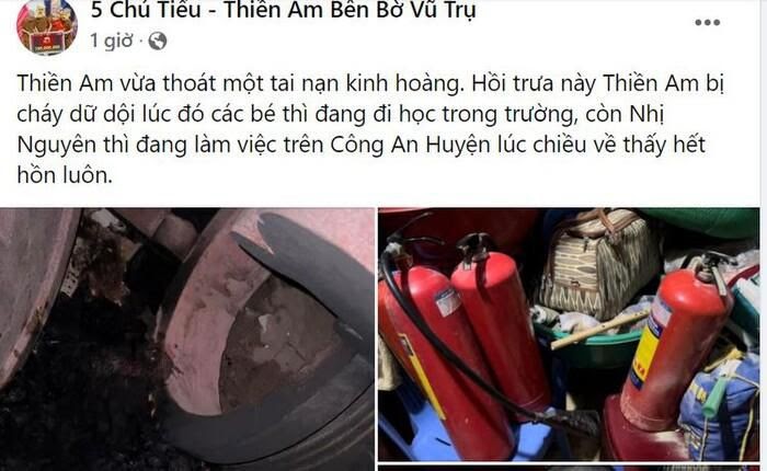 “Thiền Am vừa thoát một tai nạn kinh hoàng. Hồi trưa này Thiền Am bị cháy dữ dội lúc đó các bé thì đang đi học trong trường, còn Nhị Nguyên thì đang làm việc trên Công an huyện lúc chiều về thấy hết hồn luôn”, Nhị Nguyên viết. Hiện chưa rõ thiệt hại cụ thể tại Tịnh thất, song dòng trạng thái ngắn kèm một số hình ảnh liên quan đã nhanh chóng thu hút hàng nghìn lượt bình luận.