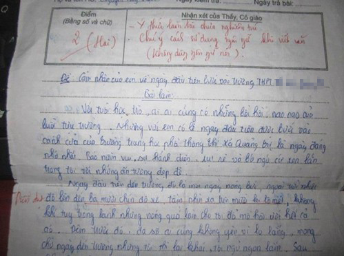 "Với tuổi học trò, ai cũng có những bồi hồi, nao nao của buổi tựu trường. Nhưng với em có lẻ ngày đầu tiên bước vào cảnh cửa trường trung học phổ thông... là ngày đáng nhớ nhất. Bao niềm vui, sự hãnh diện, rụt rè và bỡ ngỡ cứ xen lẫn trong tôi với những ấn tượng đẹp đẽ.